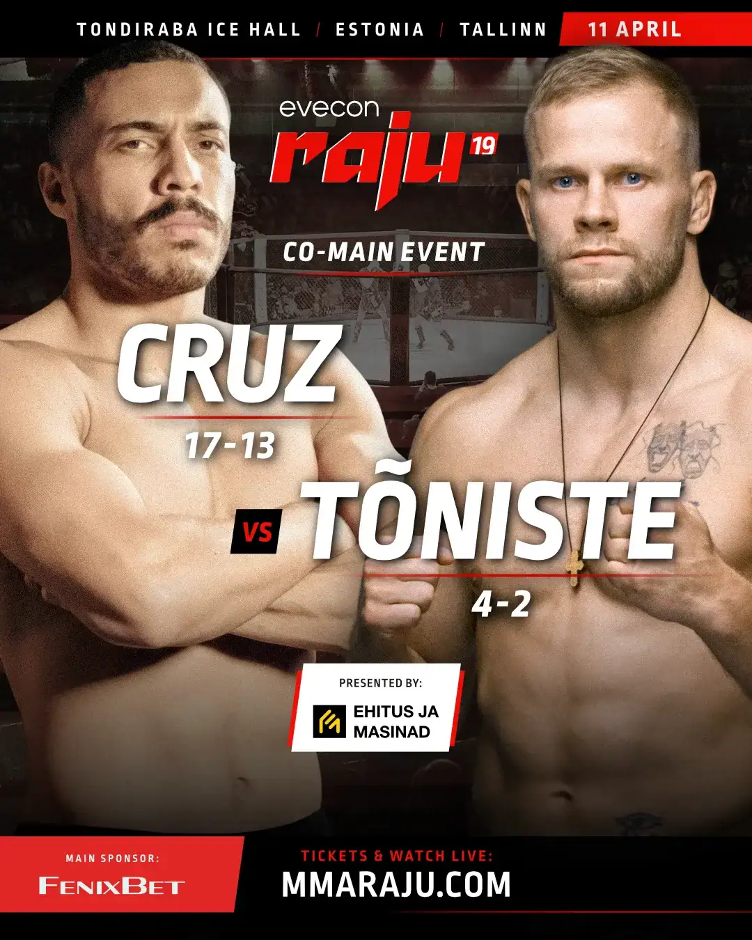 “Cruz is an extremely dangerous striker and, as a BJJ brown belt, very experienced on the ground. At the same time, I believe Kristjan has the edge in pure wrestling. The key will be maintaining discipline and imposing his own game. A submission win over such a high-level specialist would send a clear message — Tõniste is back, he believes in himself, and he is once again moving steadily on a winning path,” Tõnissaar added.