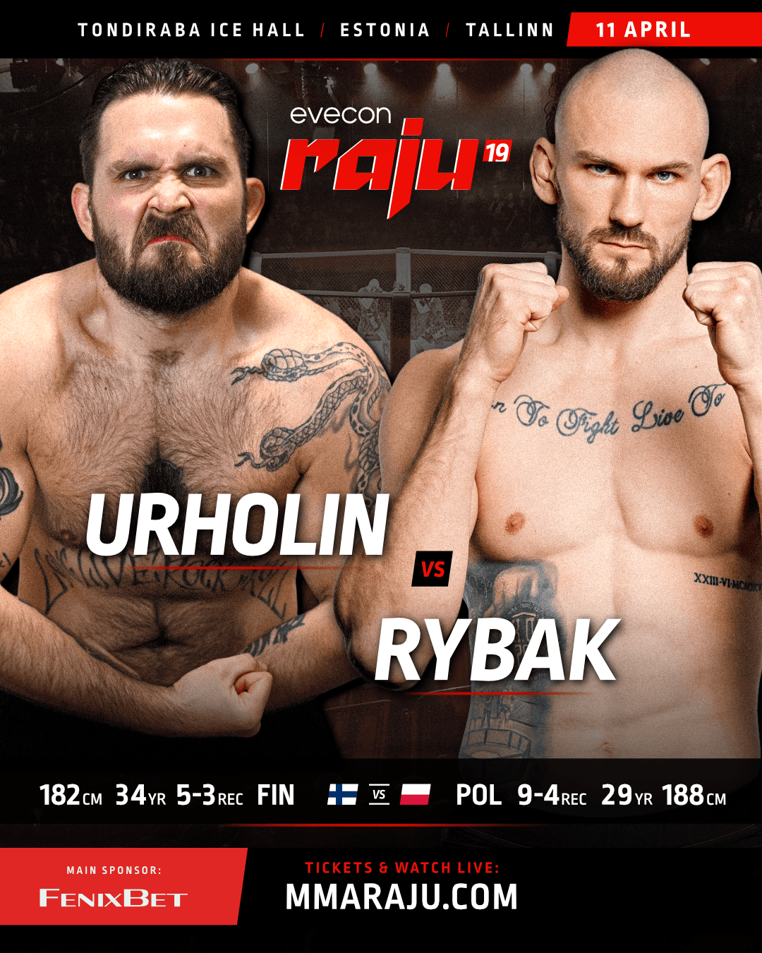 “Spectacular and high-level international matchups have come to Raju to stay. This time we bring back to the audience the already familiar Mateusz Rybak, who will face Riku Urholin. The Finn’s goal is clear – to finally open the account of Finnish professional victories at Raju. Looking at both men’s statistics and how many of their fights have ended before the final bell, it’s clear that this duel will leave no one indifferent,” said Ott Tõnissaar, CEO of Evecon Raju.